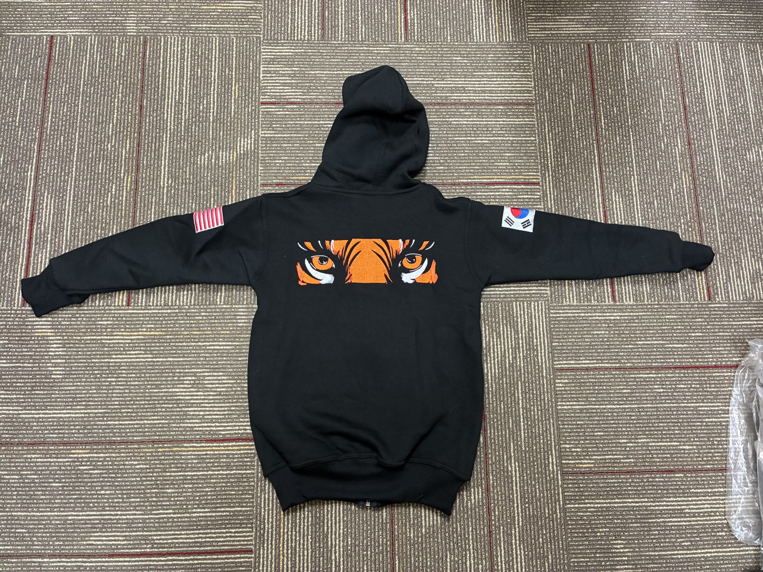 Our TaeKwonDo Tiger Zipper Hoodie features a fully embroidered tiger-eye design across the back, reminding everyone that strength, focus, and discipline are always present.
